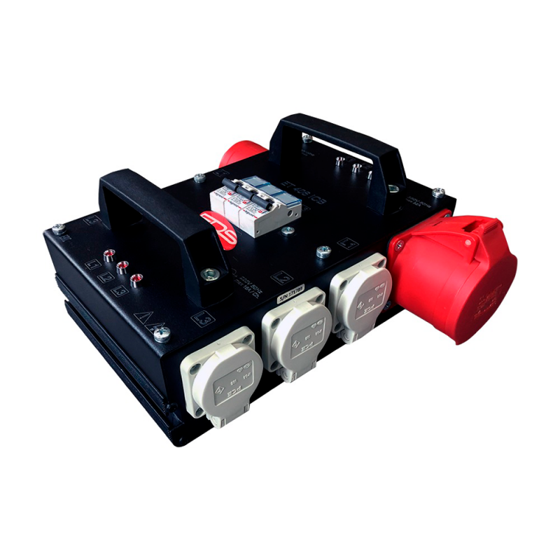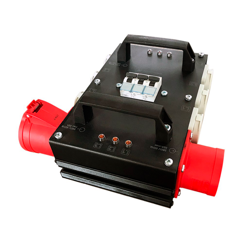 Туровый дистрибьютор питания ET 406 ICB предназначен для подключения звукового и светотехнического оборудования. Обладает входом 380 Вольт/32 Ампера и сквозным выходом 380 Вольт/32 Ампера. Распределяет 380 Вольт 32 Ампера на 3 независимые линии 220 Вольт/16 Ампер. На каждой такой линии установлен защитный автомат от короткого замыкания и по 2 розетки. Всего на трёх фазах попарно подключено 6 розеток. Прокат дистрибьютора питания позволит вам обеспечить независимое подключение звука, света и других приборов и распределить общую нагрузку.