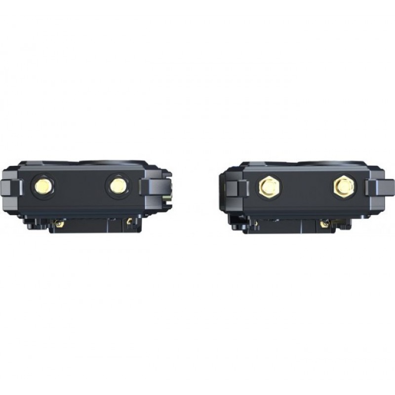 Приемник и передатчик имеют идентичные формы корпусов и точки крепления с резьбой под стандартные винты 1/4". Это позволит устанавливать систему на любую «клетку», «Холодный башмак», штатив и т.д. Установив, например, приемник на легкий штатив для световых приборов, его можно приподнять над препятствием и установить надежный контакт с передатчиком.