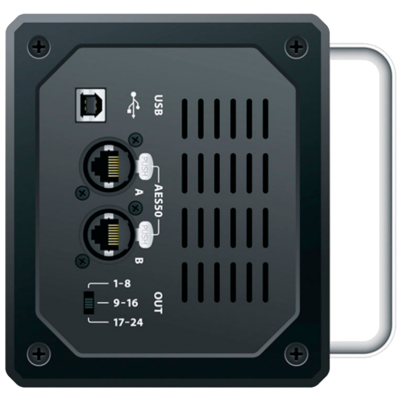 - 2 интерфейса AES50, сетевые порты AES50 с сетевой функцией SuperMac от Klark Teknik, обеспечивают сверхнизкое дрожание и задержку, которые используются для каскадирования других каскадных блоков S16, SD16 или SD8.