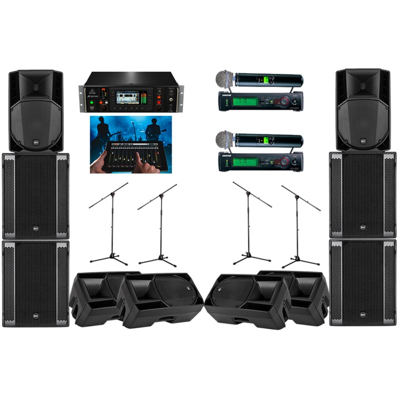 Аренда комплекта звука "ПРЕМИУМ ЛАЙВ" - это выбор конфигурации техники для средней и большой площадки, на которой планируется живое выступление приглашенного артиста и музыкальных групп. Оборудование скомпилировано специально по частым запросам выступающих артистов. В комплекте присутствуют флагманские сателлиты RCF 745 для яркого чистого звучания вокала, мощные сабвуферы RCF SUB 8003-ASI, а также мониторная линия из четырех RCF 715, для того что бы участники группы слышали сами себя. Весь звук комплекта управляется цифровым микшерным пультом BEHRINGER X32 RACK.
